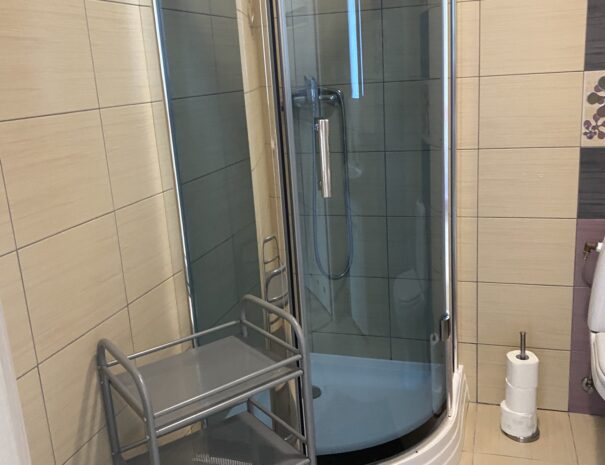 – Łazienka z WC, kabiną natryskową i umywalką,